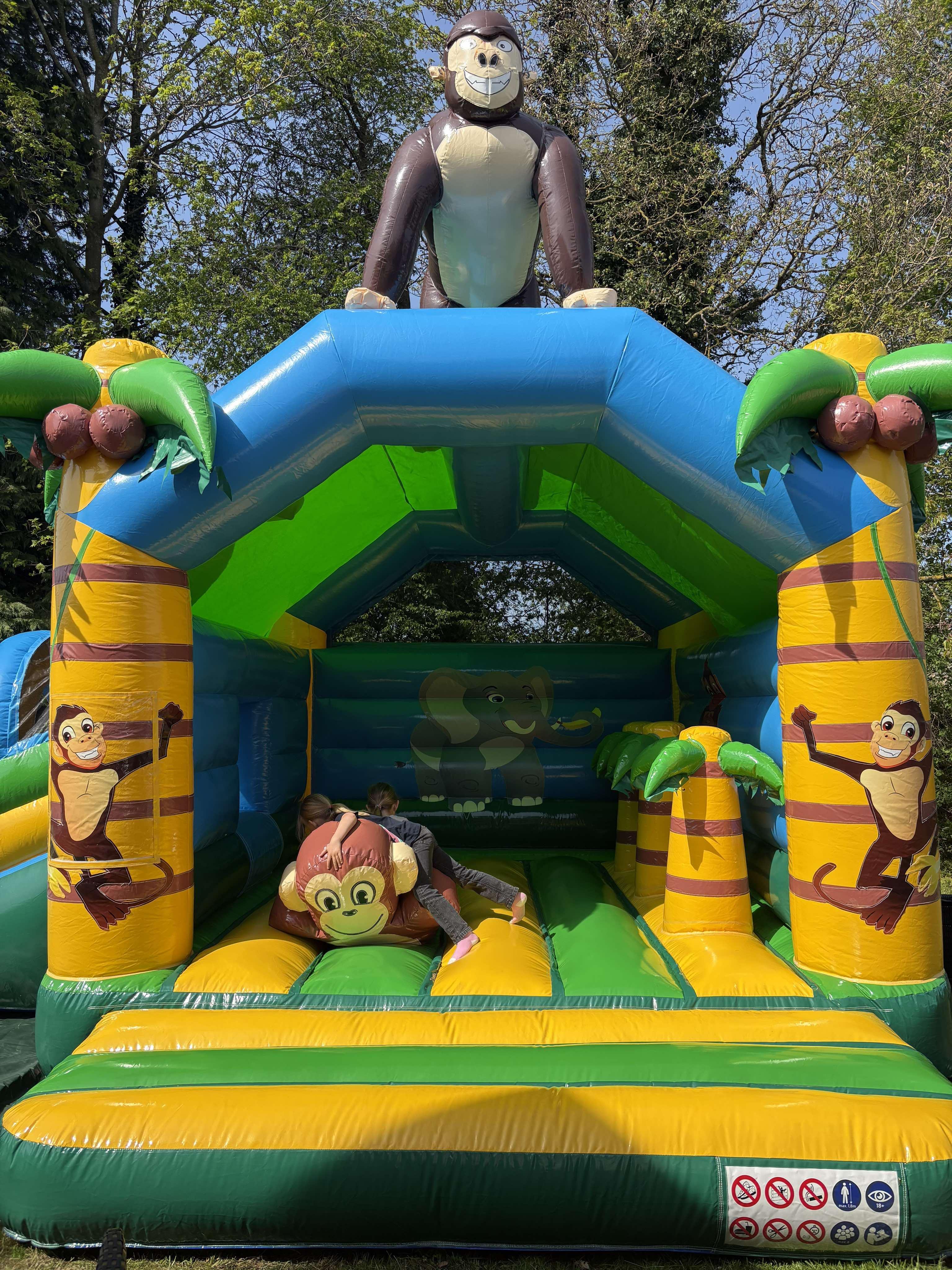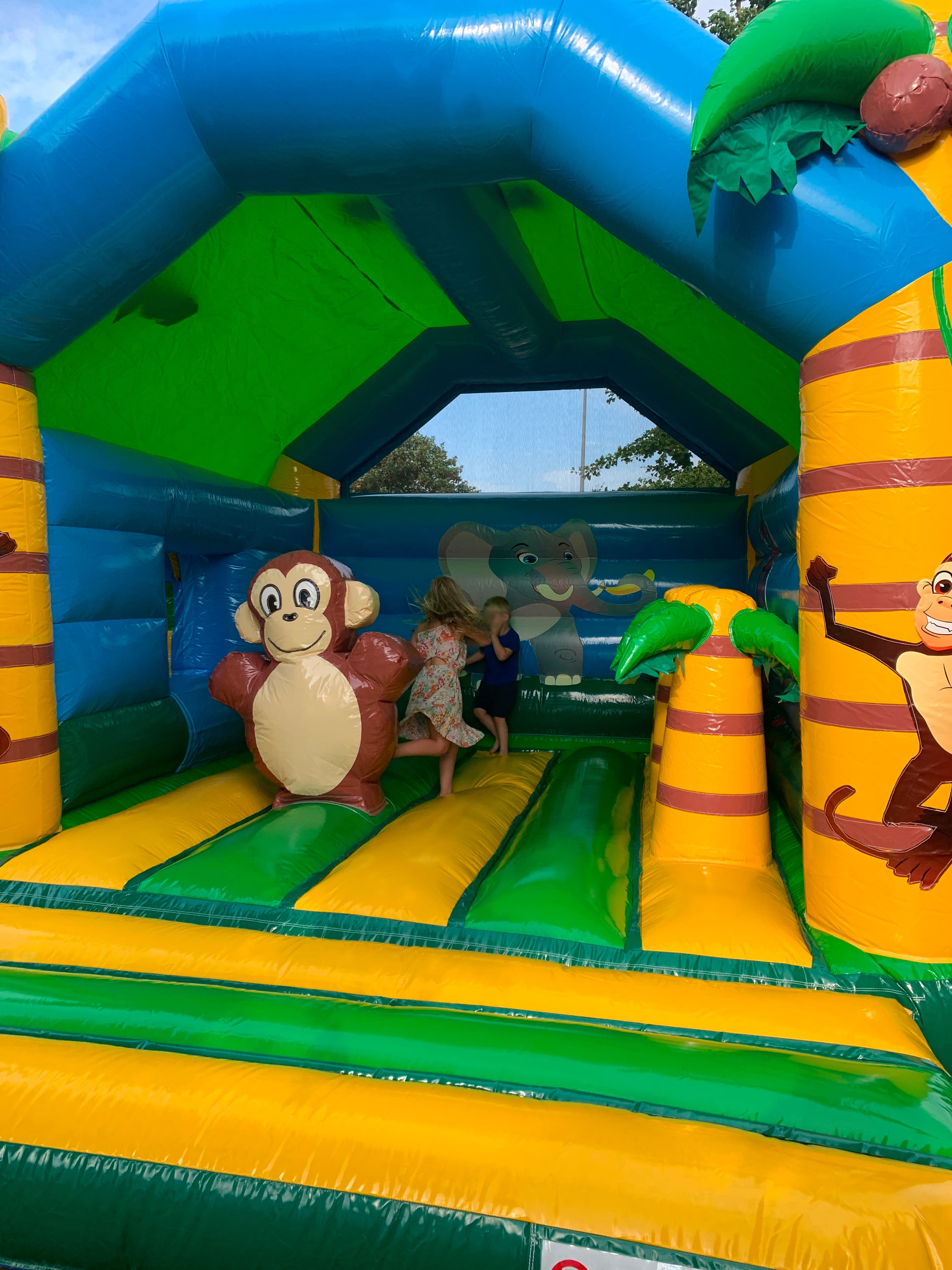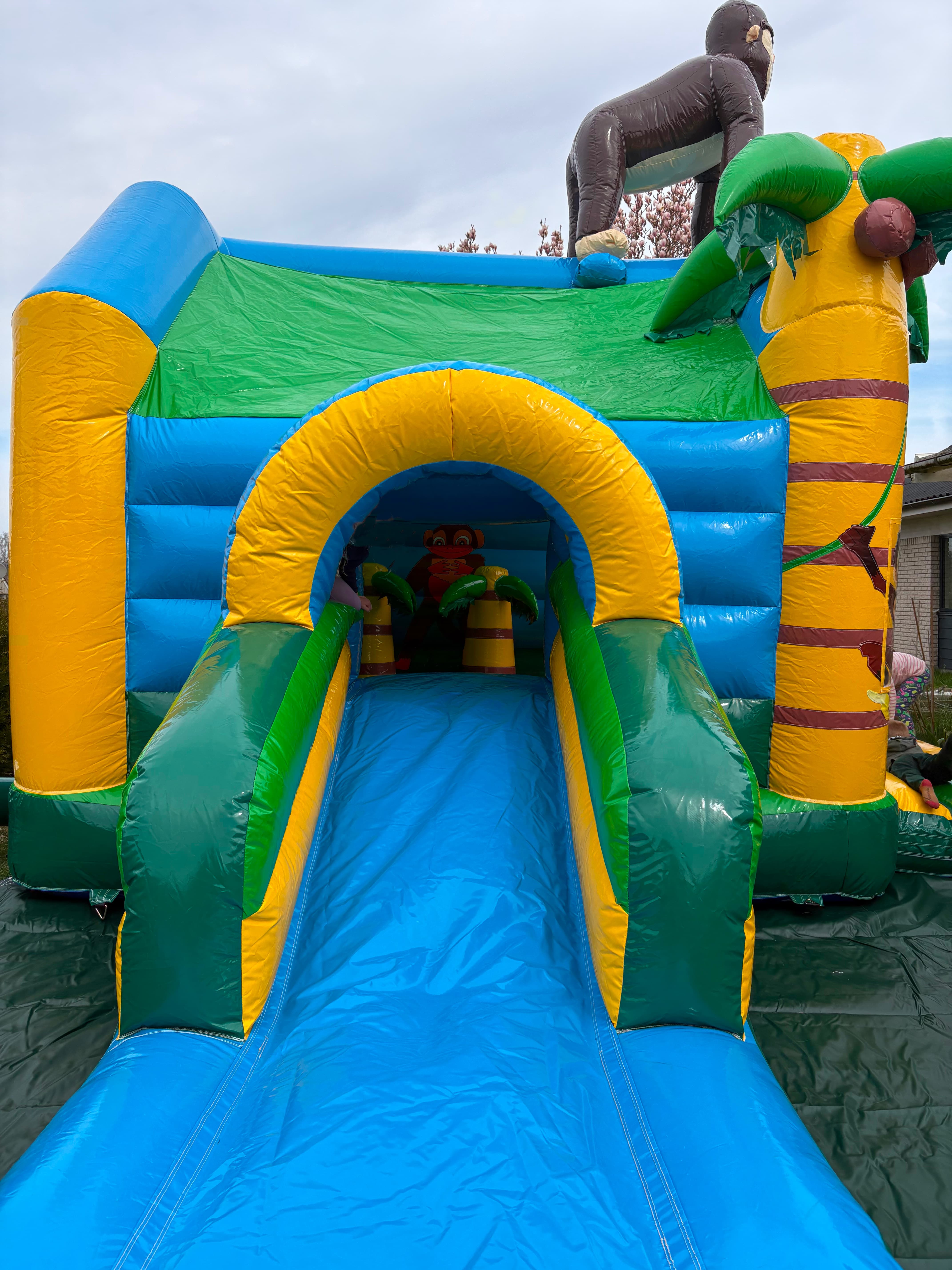 Vores hoppeborg er farverig og jungle-tematiseret med rutsjebane, palmer og dyr, der skaber en sjov oplevelse for børnene. Den er ideel til fødselsdage, fester og arrangementer.